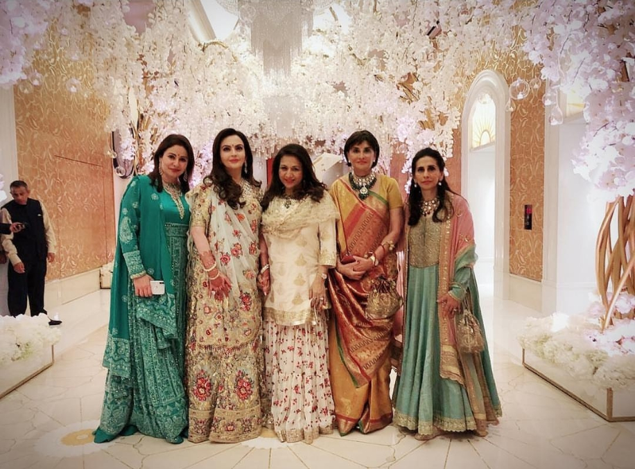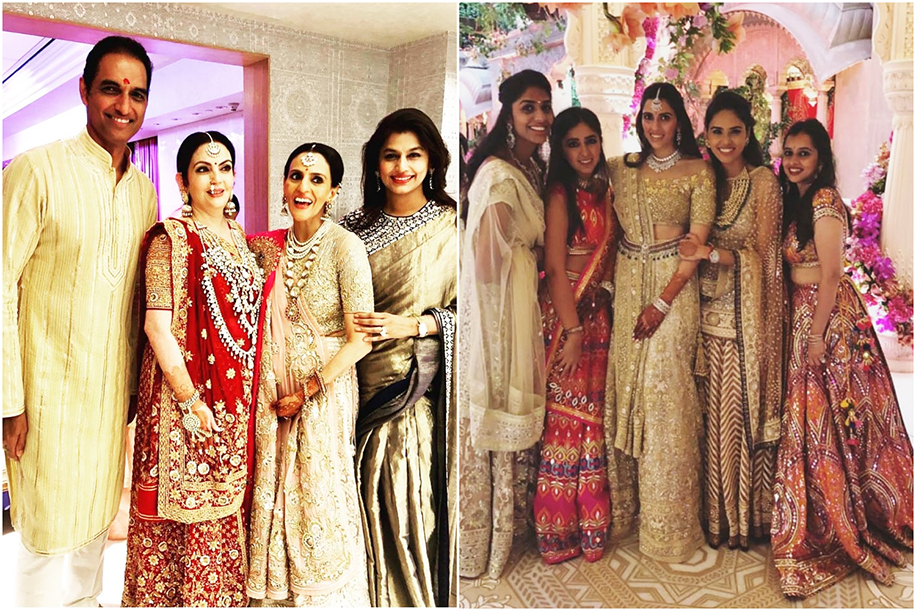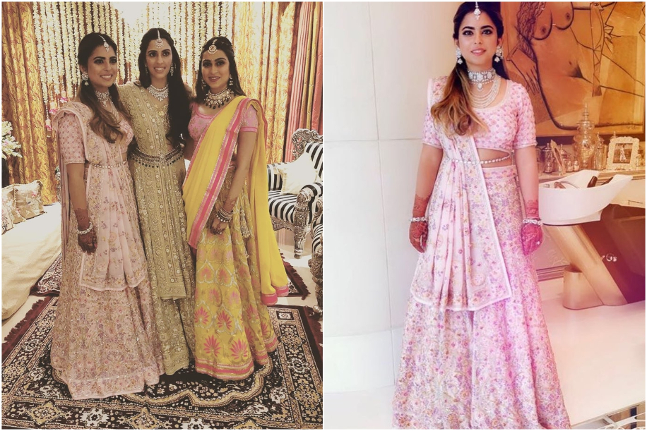 The following night for the pre-engagement party, Shloka appeared in a golden lehenga by Abu Jani and Sandeep Khosla and changed into a pink ensemble by Sabyasachi after the rituals were over. The internet saw a number of video clips from the festivities. Nita Ambani welcoming the newest member in the family with a dance and Isha Ambani getting playful with her brother after an aarti. Karan Johar, Ranbir Kapoor, Alia Bhatt, Shah Rukh Khan, Gauri Khan, Priyanka Chopra among other celebs were seen entering the Ambani residence.