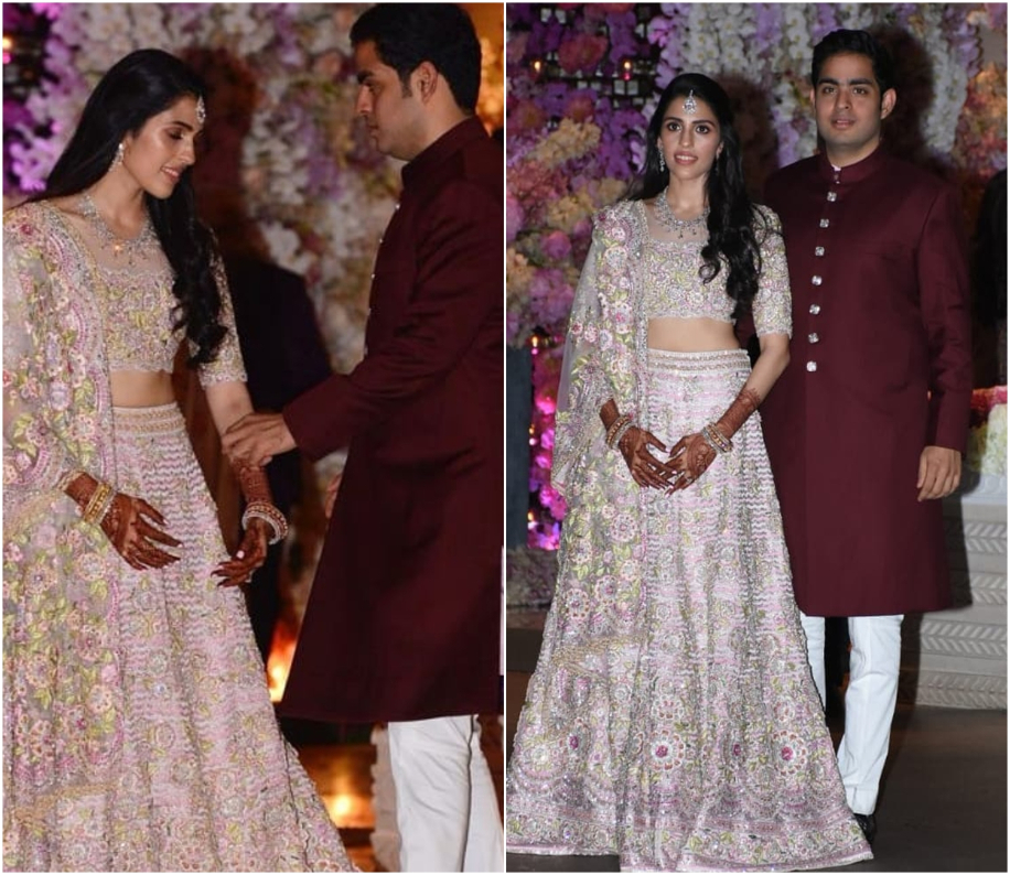 The couple’s engagement celebrations began a few days prior to the ceremony with a mehndi function where the glowing bride-to-be was spotted wearing a blue and cream Anamika Khanna lehenga that was complete with heavy floral embroidery. Akash, on the other hand, kept it simple with a white kurta. While the occasion was attended by several celebrities, Priyanka Chopra showed the couple some love on social media by posting a picture with them with a caption that read “Congratulations Akash and Shloka!! Such a beautiful ceremony.. mehndi hai rachne wali.. love you both.”