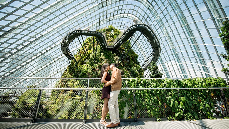 This enclosed conservatory is a forest of illusion with its 35 metre tall mountain, covered in greenery and the world’s highest man-made waterfall indoors! The structure is temperature controlled and makes for some truly unique photos at different times of the day.