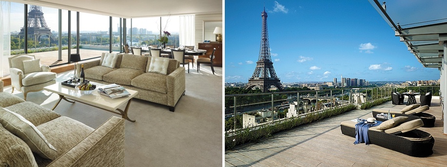 La Suite Shangri-La offers a sprawling 220 sqm of pure luxury, including a private terrace that stretches for 100 sqm with the Eiffel Tower virtually at your doorstep. This suite is located on the seventh floor and offers the most mind-blowing view of Paris, from Montmartre to the Trocadero. Perfect for an intimate celebration with loved ones.