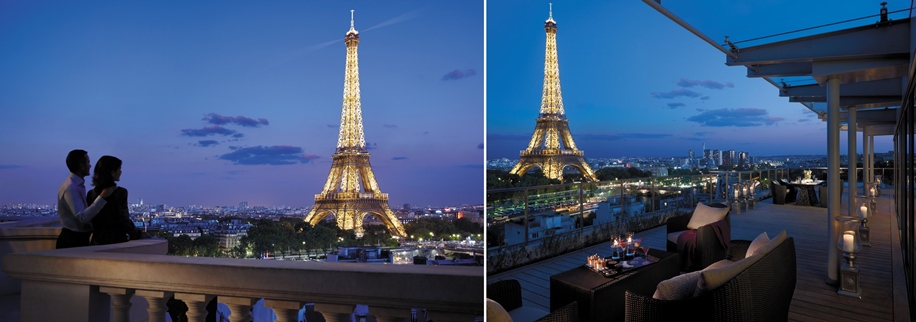 The first-floor terrace with a magnificent view of the Eiffel Tower – possibly one of the finest in Paris – is the perfect setting for a very intimate wedding or renewal of vows.