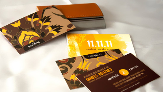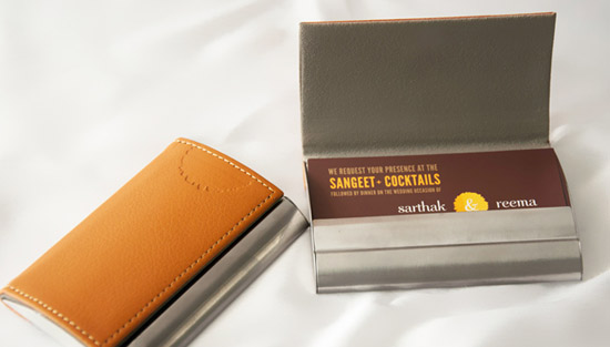 Sarthak Shah’s parties were always unique and the themes most interesting. After he got engaged, it was time for Wedding Planning and he spent a lot of time thinking of the visual communication. Obviously, he wanted a very creative invite, so he got in touch with Sindoor Couture Designs known for their good work in the field. Sindoor Shah who runs Sindoor Couture Designs shared with him the idea of a business card holder, she tells us more: “For each of the functions, there was a separate card, with detailed gold foiling at the back of each insert. It had the ‘wow’ factor which Sarthak was looking for.” Sindoor explains why brides, grooms and their families are moving away from jazzy and bulky invitations to more creative concepts.