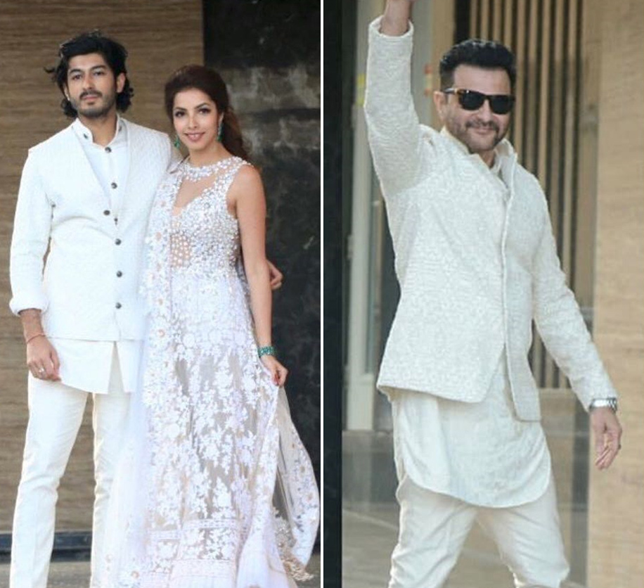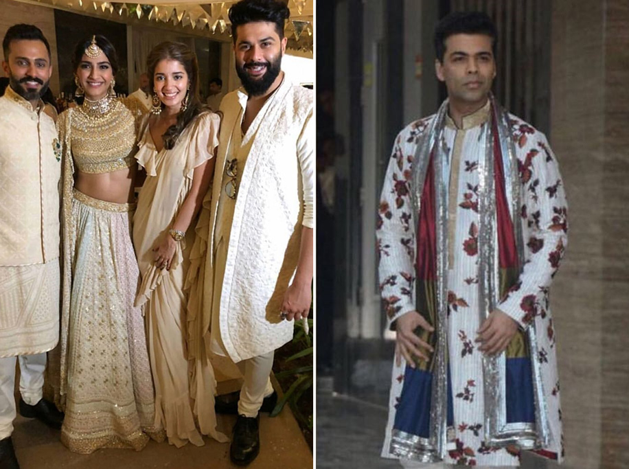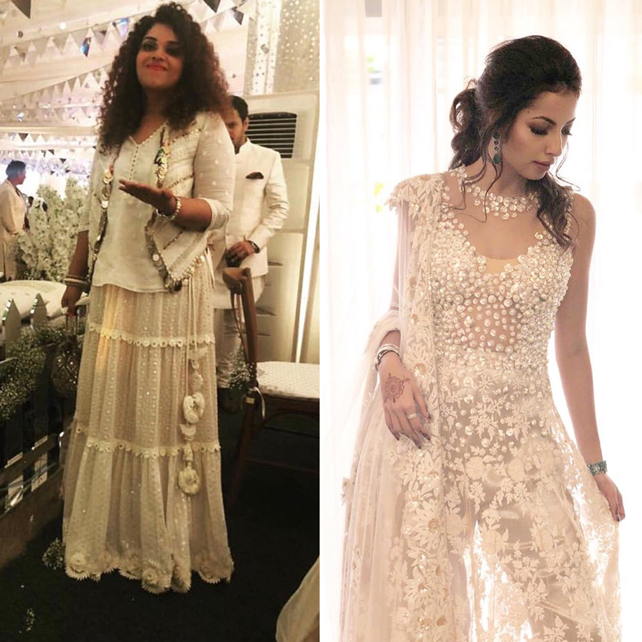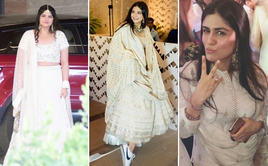 Anshula Kapoor in a pearl white lehenga by Arpita Mehta. Rhea Kapoor paired Nike sneakers with her Abu Jani Sandeep Khosla lehenga. Namrata Soni looked pretty in an Anita Dongre kurta and churidaar.