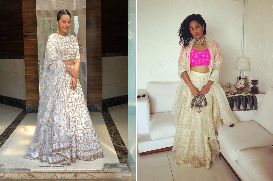 Swara Bhaskar wore a Manish Malhotra lehenga with Amrapali Jewellery. Masaba Gupta wore her own creation with a dash of hot pink.