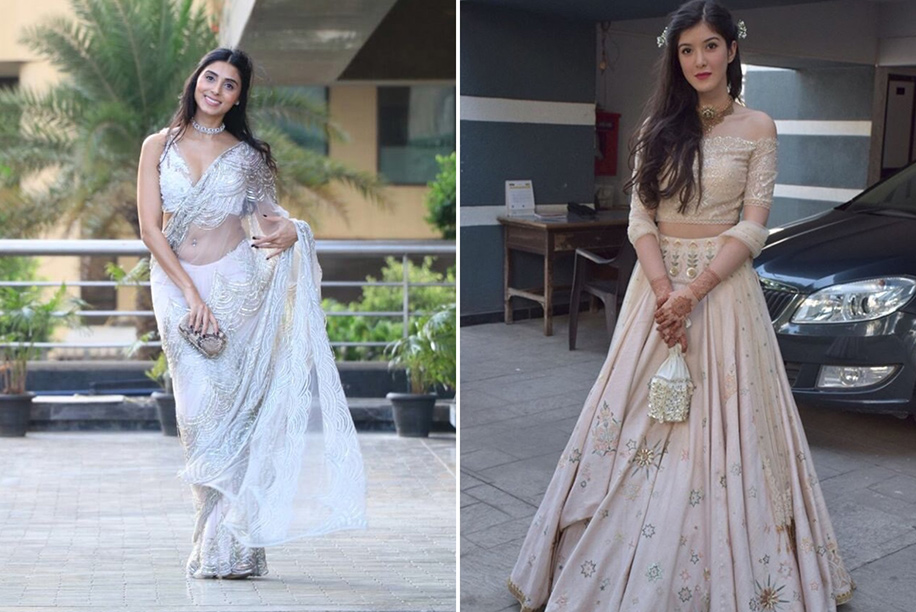 Pernia Qureshi wore an elegant white and grey sheer saree. Shanaya Kapoor wore a dusty rose lehenga by Tarun Tahiliani with a boho hairstyle.
