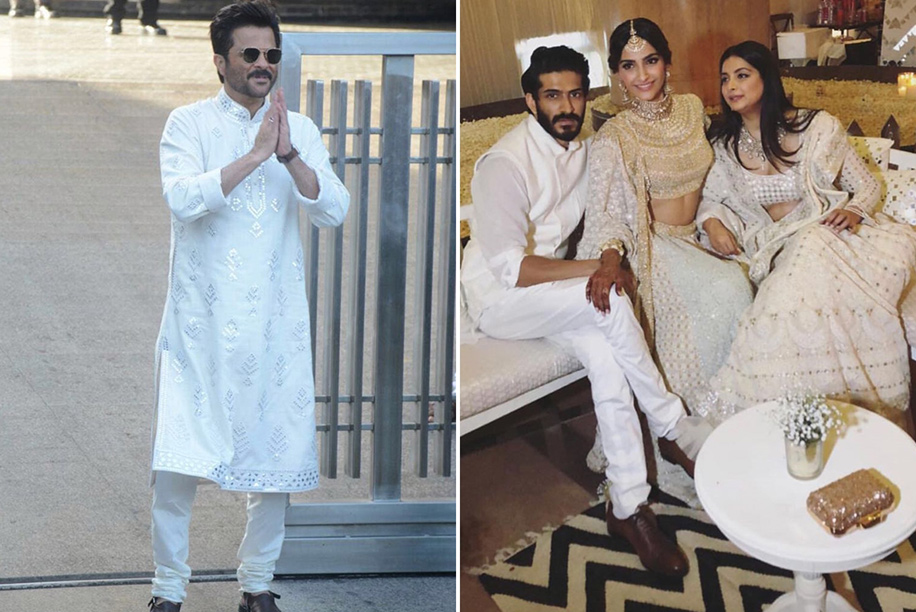 Anil Kapoor kept it simple with a white kurta with silver gota embroidery by Abu Jani Sandeep Khosla. Sonam’s siblings Harshvardhan and Rhea Kapoor both wore ivory ensembles.