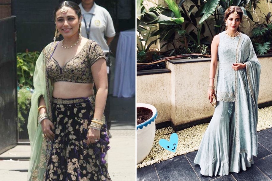 While Rani Mukherji looked regal in a lehenga by Sabyasachi, Arpita exuded “begum vibes” in a pastel tone outfit.