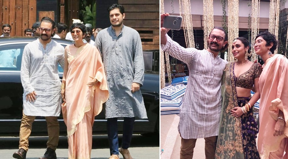 Aamir Khan and his family kept it simple and stuck to basics. While he and Junaid Khan wore an easy kurta, Kiran Rao picked looked elegant in a peach saree with a gold scalloped border.