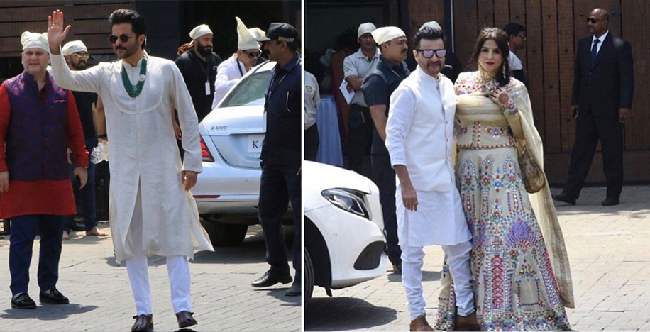 Looks like the Kapoor sibling decided to twin in whites. Anil Kapoor relied on his favorite designer Raghavendra Rathore to create for him the perfect neutral monochrome outfit. Sanjay Kapoor too opted for a white kurta and bandi by the same designer.