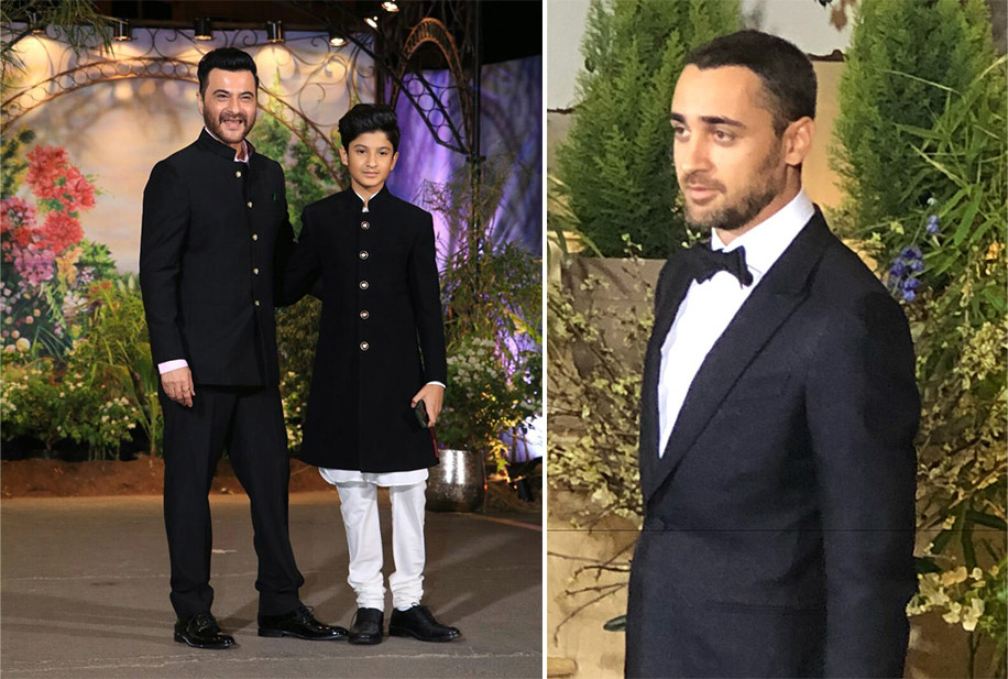 Sanjay Kapoor and Imran Khan made an appearance in classic black. While Sonam’s uncle opted for a bandhgala by Raghavendra Rathod, her I Hate Luv Storys costar wore a tailored suit and a bowtie.