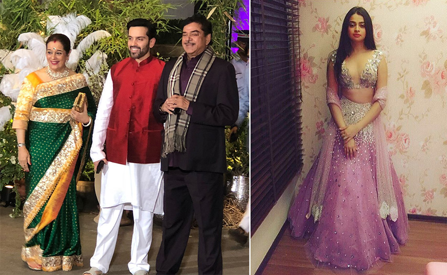 While Shatrughan Sinha too followed the trend of wearing black, wife Poonam Sinha and son Luv Sinha chose more colorful attires. Tanya Ghavri looked resplendent in a lilac lehenga by Manish Malhotra.