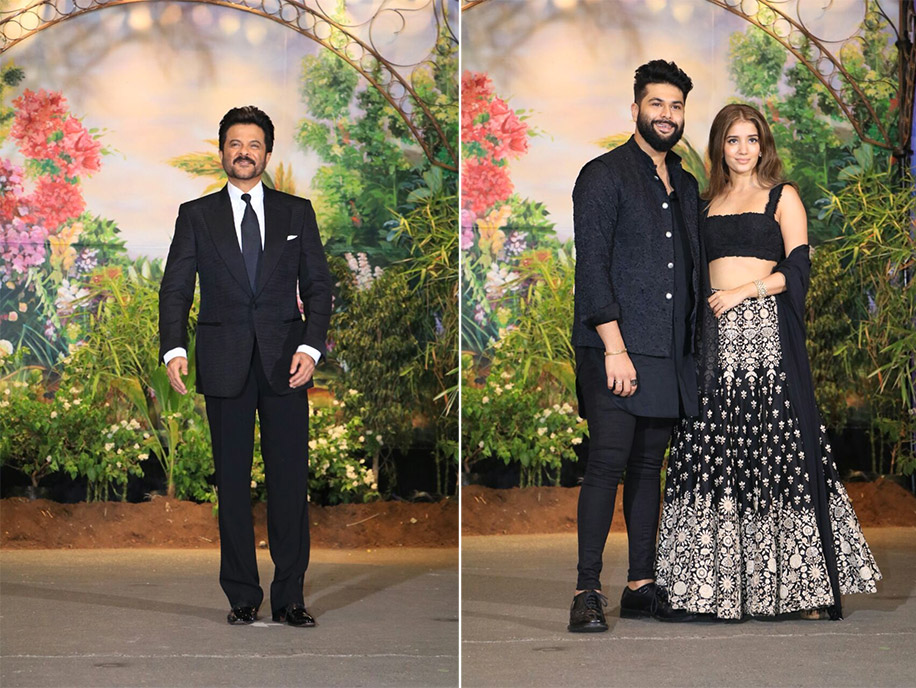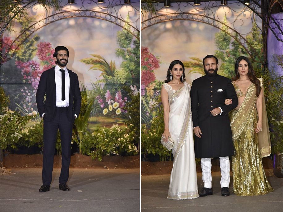 A chip off the old block Harshvarshan Kapoor dressed up in a black suit. Kareena Kapoor looked ravishing in a heavily embellished Manish Malhotra lehenga.