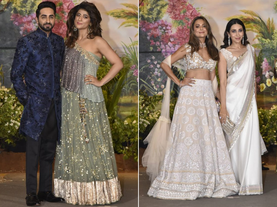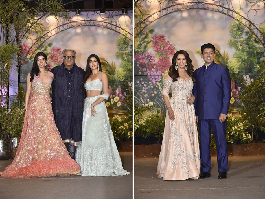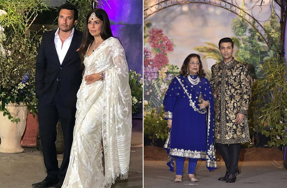 Anaita Shroff Adajania was a vision in white as she wore a saree with tone on tone work. Karan Johar’s black achkan covered in golden floral motifs by Abu Jani Sandeep Khosla was a statement maker.