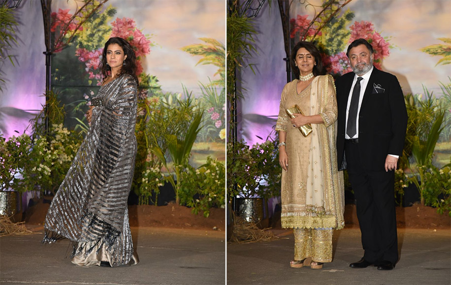 Kajol draped a grey saree with sequins details and posed with the designer of her outfit. The iconic Bollywood couple Rishi Kapoor and Neetu Singh were stunning in their respective black and golden suit.