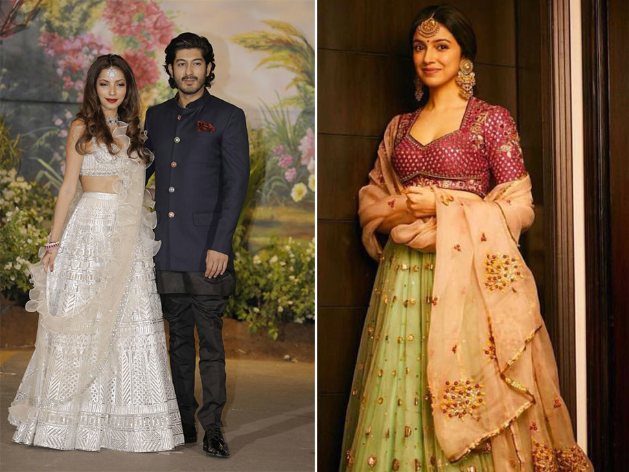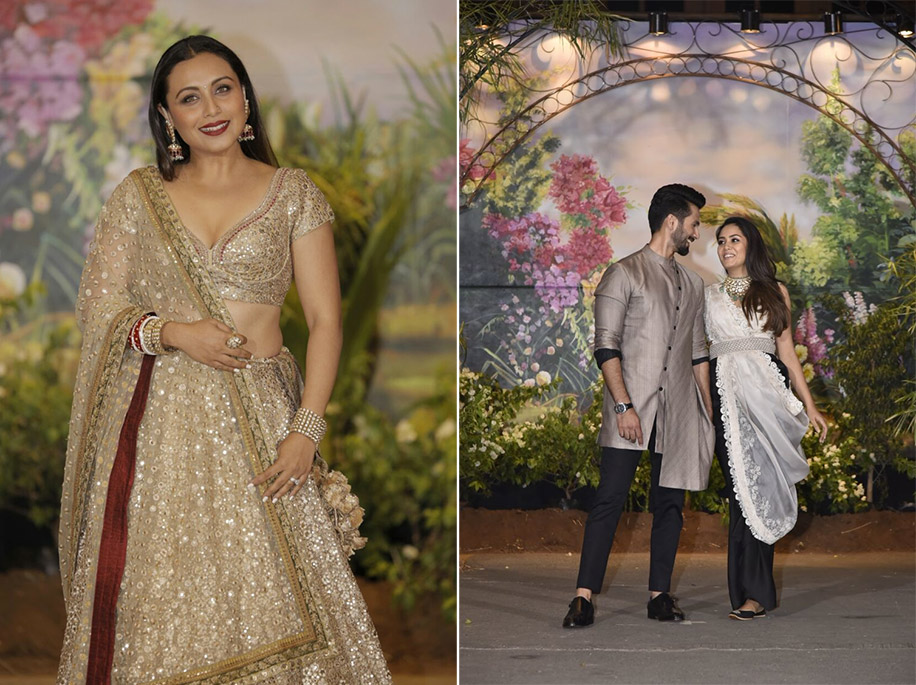 Rani Mukherji, once again, wore a lehenga by Sabyasachi, only this time, she was a stunner in golden. Shahid Kapoor attended the celebration in an asymmetrical grey kurta while Mira Rajput was stylish in a black and white Indo-Western outfit.
