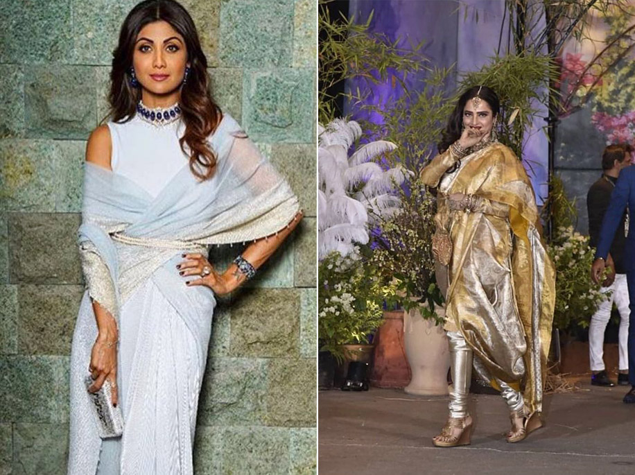Both, Shilpa Shetty and Rekha came dressed in an interestingly draped Indo-Wested outfit. While Rekha stuck to her signature Kanjevaram which she wore over skin fitted pant, Shilpa Shetty looked lovely in a pale blue outfit by Tarun Tahiliani.