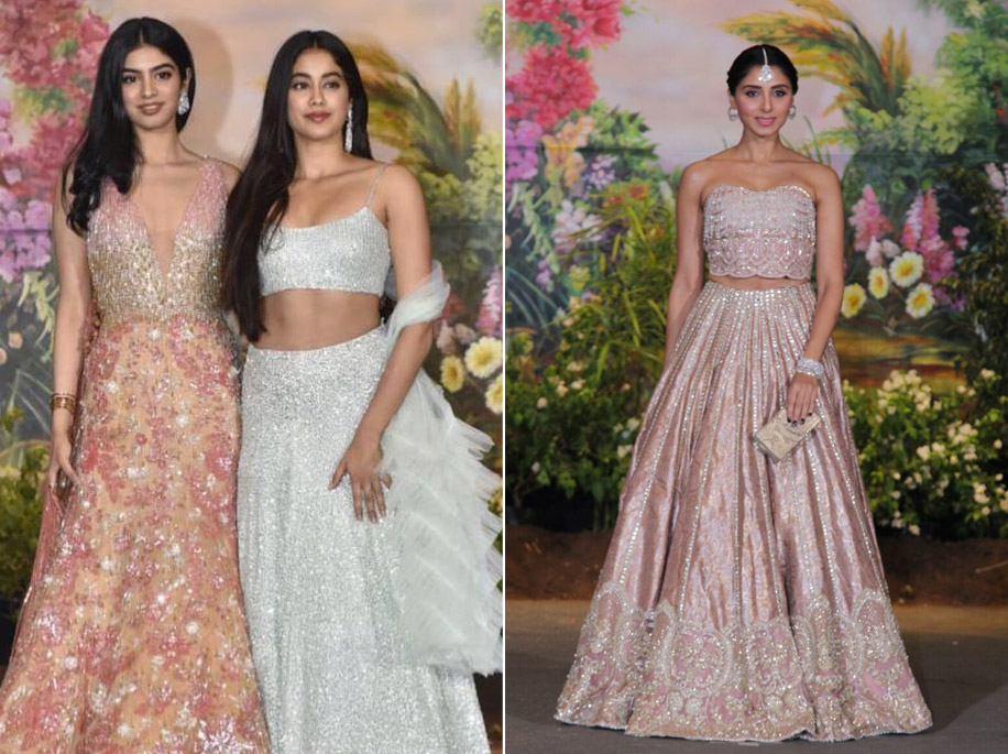 A pink lehenga by Lahore based couturier Faraz Manan was Pernia Qureshi’s outfit for the night. Sisters Janhvi Kapoor and Khushi Kapoor were seen in creations by Manish Malhotra.