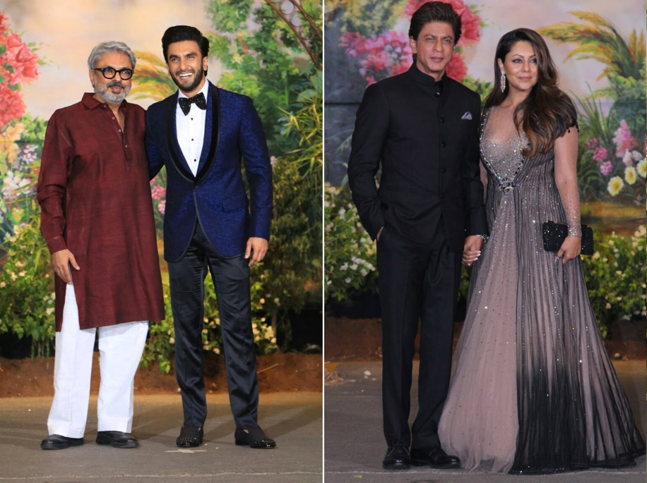 Ranveer Singh posed for the camera in a blue tuxedo. Shah Rukh Khan was seen in a black bandgala jacket with wife Gauri Khan who opted for a striking nude and black gown by Tarun Tahiliani.