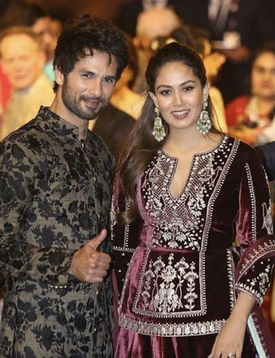 Shahid Kapoor in Siddhartha Tytler, Meera Kapoor in Anita Dongre