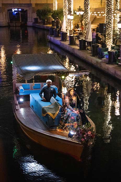 Venues: Fort Island at Madinat Jumeirah (Mehndi and Sangeet), Atlantis, The Palm (Wedding), The Ritz-Carlton Dubai (Walima)