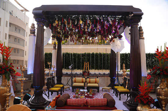 Priyanka, the daughter of late Bunty Soorma (who co-founded entertainment company Cineyug with the Moranis) married business magnate Advait Chaturvedi in Mumbai last month. The wedding functions included the Youngster’s party at Novotel Hotel, Mehndi at the lawns of the Goenka Bunglow in Juhu, Pheras at the Soorma Bunglow in Juhu, and the Reception at the Turf Club, Mahalaxmi. The wedding arrangements were managed by Cineyug, while the theme and decor for the Youngster’s party, Mehndi and Pheras was designed by Dreamzkraft, Bollywood’s favourite wedding planners & decorators. The reception saw a big Bollywood presence, and SRK stole the show with his Don 2 look intact.