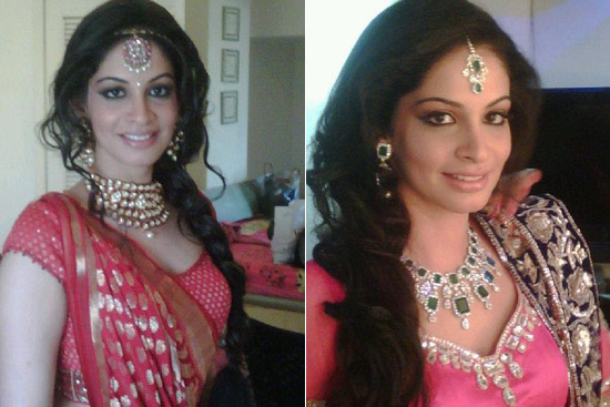 For the Mehndi, Priyanka wore a red and gold outfit. For the Pheras, she wore a pink and blue Manish Malhotra ensemble. Her Make-up & Hair was by Ojas Rajani