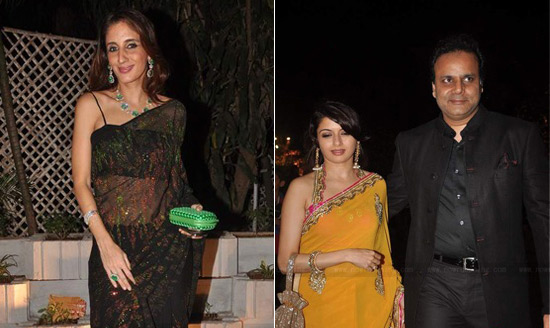 Jewellery Designer Farah Khan (left) and former Actress Bhagyashree and her husband Himalay Dassani at the Reception