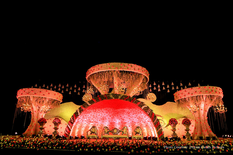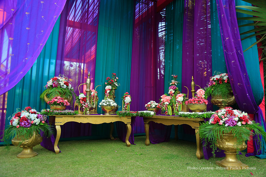 Decor: Pujan Decor (Mehndi and Reception), Helly Corporation (Sangeet), Wedding Radhe Corporation (Wedding), Buds N Roses