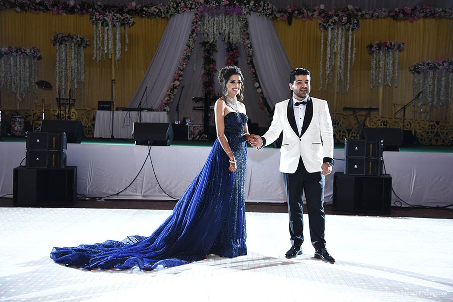 The decor for the Sangeet was resplendent with floral arrangements, beautiful seating arrangements, and an impressive stage decorated with elements that matched the Egyptian night theme. The event space was transformed into “a piece of Egypt” with gold and ivory hues, beautiful lanterns and colorful flowers.