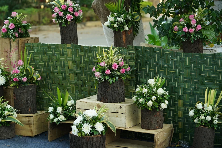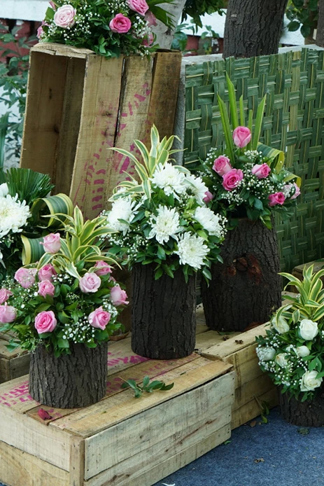 “Taking the current state of the world into account, one should always strive to reduce one’s ecological footprint. For this event, we ensured it by using recycled pallet boxes and trunks of uprooted or previously cut down trees to create floral compositions that pleased the eye and the heart.”