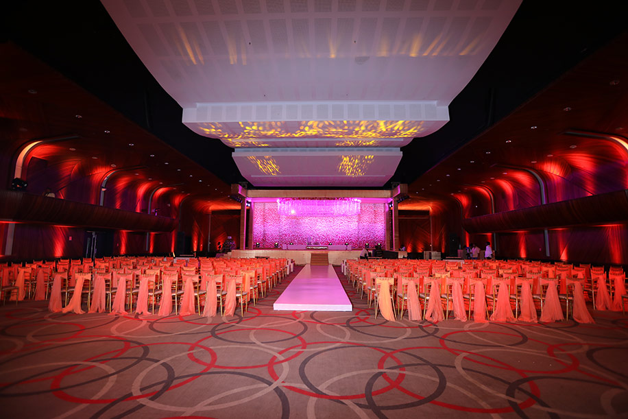 Flowers can conjure a romantic ambience like no other décor element. The couple welcomed their guests to a reception festooned with an opulence of florals – fresh posies in pastel evoked a charming English garden. Using glorious floral archways, glittering crystal chandeliers, delicate table centerpieces and dramatic, sweeping drapes, Celebrations transformed Le Meridien Kochi into a fairytale to walk in to.