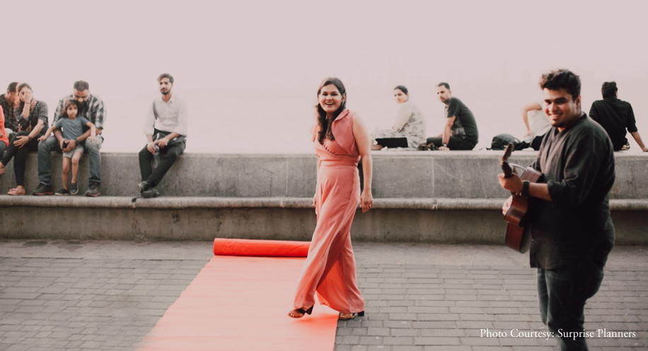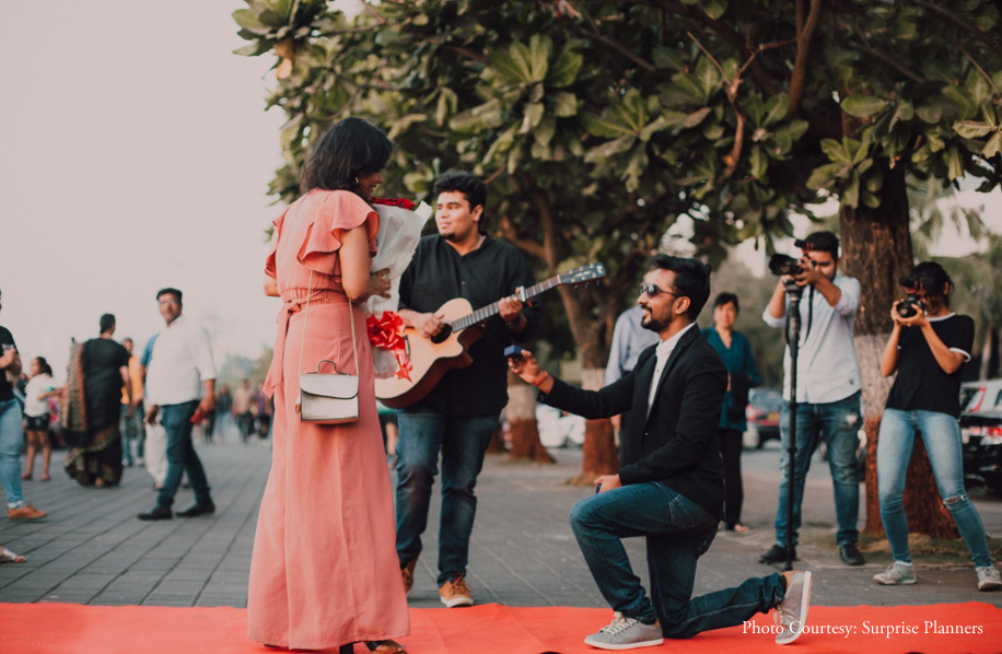 Take an iconic Mumbai setting – Marine Drive, add the charm of a vintage car ride and throw in the thrill of a surprise and you get all the ingredients of Shashank’s amazing proposal to Kriti.
