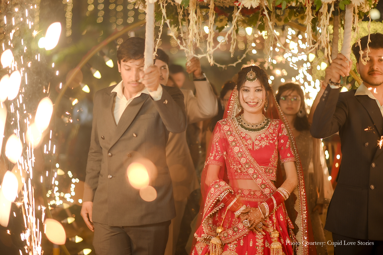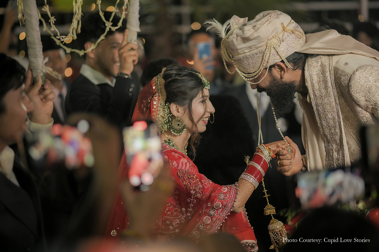 The wedding day was hosted at a different venue, where the décor took on a regal palette of ivory, gold, and crimson. Under softly glowing chandeliers and floral canopies, the couple exchanged vows in a ceremony steeped in love and tradition. Every detail of the wedding — from seamless planning to visual storytelling — was thoughtfully executed. Anurag fondly credits Cupid Love Stories once more, sharing, “Their photos and videos were dreamy. They were always ahead of schedule and had everything arranged at the venue without needing direction. Being from a similar creative profession, I can say they’re doing a fantastic job.” Their engagement shoot had already won hearts online, and this wedding story, too, was crafted with the same passion and flair.