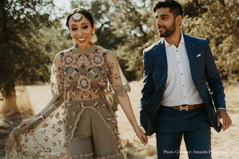 Gagan and Jasdeep first met in college, and as time flew by, their friendship evolved into love. After a memorable proposal orchestrated by Jasdeep in Orange County, California, the duo entered a new chapter in their lives. The couple hosted a stunning boho-themed engagement ceremony at Gagan’s abode, and their pre-wedding photoshoot was a carefully co-ordinated affair handled by a photography expert they sussed out on Instagram.