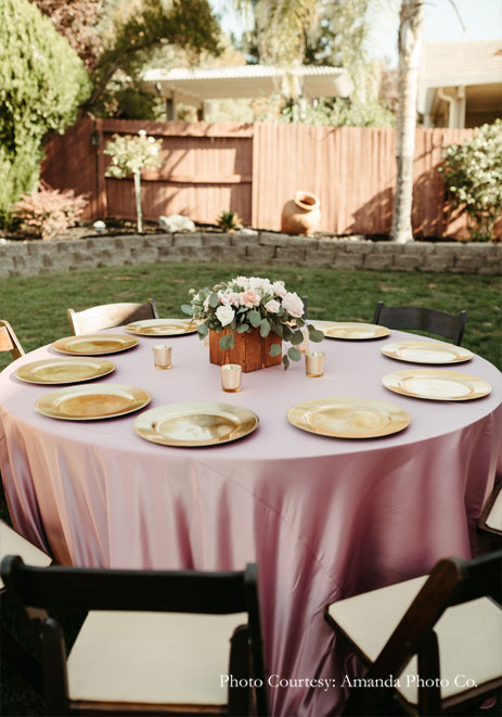 Giving us a brief glimpse of their love story, Gagan shares, “Jasdeep and I first met in college and soon became best friends who fell in love over time. When it came to popping the question, Jasdeep left me completely surprised by his proposal. We were visiting Orange County in California and, just as the sun was setting, he led me towards a flower-adorned gazebo where each basket contained a note reminiscing about a special ‘first’ in our lives.”