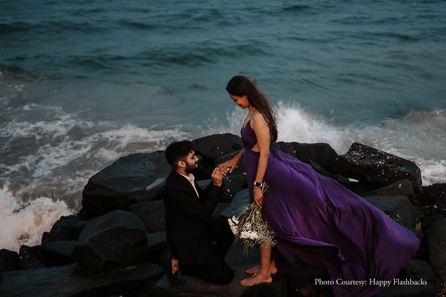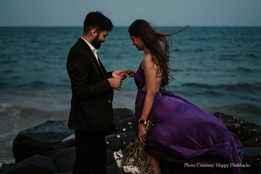 However, the highlight of the shoot was when Aayush surprised me with a spontaneous proposal. We were happily shooting in the middle of the sea on the rocks when all of sudden, I saw Aayush down on his knees with a ring in his hands! Normally, he’s very camera shy, so this gesture hit me out of the blue and I was completely swept away by his irresistible gesture of love!”