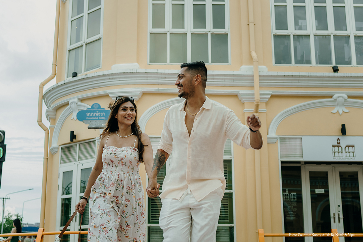 Charita, a marketing professional and Vipul, the co-founder of Knotty Affair By Namit & Vipul tied the knot two and a half years ago. Despite planning a pre-wedding photoshoot multiple times, fate had other plans and the couple never got around to it. However, they did find the perfect opportunity during their vacation to Thailand where they were completely at ease in front of the camera as WeddingSutra Favorite – Knotty Affair By Namit & Vipul captured them sharing candid moments of love.