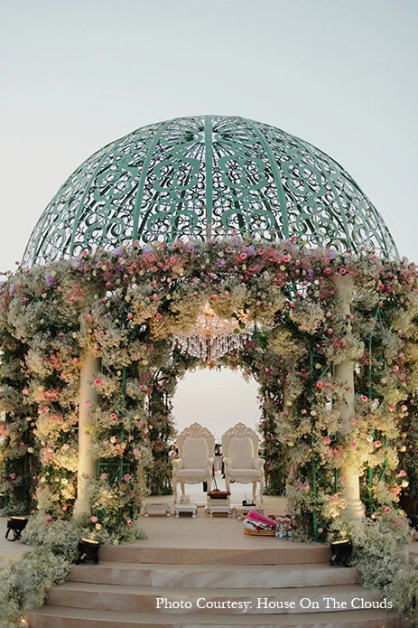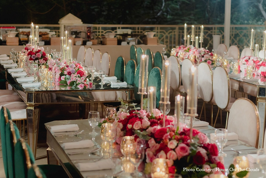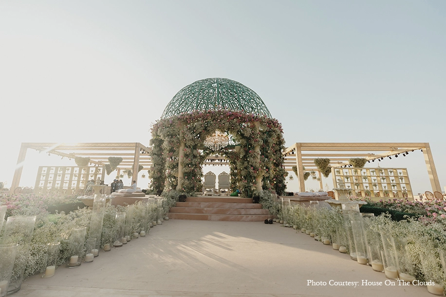 Giving us an overview of the celebrations and how they orchestrated the extravagant yet eco-conscious wedding Bhavnesh Sawhney from FB Celebrations shares, “The core vision of the wedding was to make it an environmentally conscious wedding. We literally calculated the carbon emissions of the entire event and ensured the plastic use was minimal. Every detail, from the production to the decor was looked into carefully to find sustainable alternatives. So much so that, the entire wedding had a complete check of its carbon footprint to make sure the process and the requirements do not hamper our vision for the wedding, and we managed to stick to the best, most environmentally conscious procedures all through the event.”