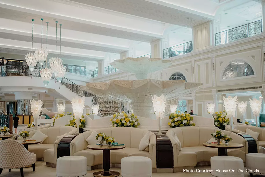 Overall, The wedding was generous in its hospitality – apart from including the usual ancillary services like hair, makeup, draping, ironing, etc, it also offered masseuse, shoe polishing, and a specially curated gentlemen’s salon. Nothing was spared in making the guests feel completely at home.”