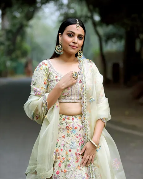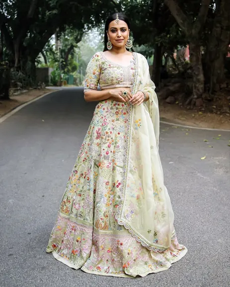 Swara Bhaskar’s beautifully embroidered Rahul Mishra lehenga is ideal for your daytime wedding