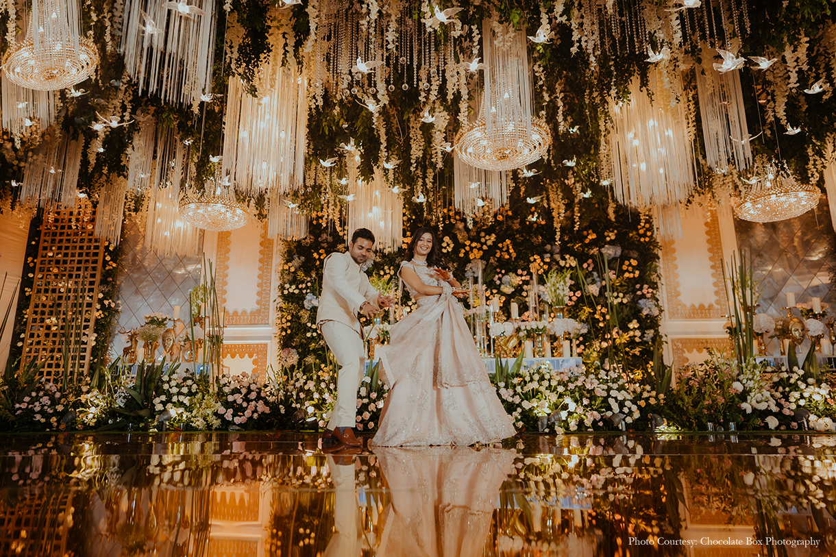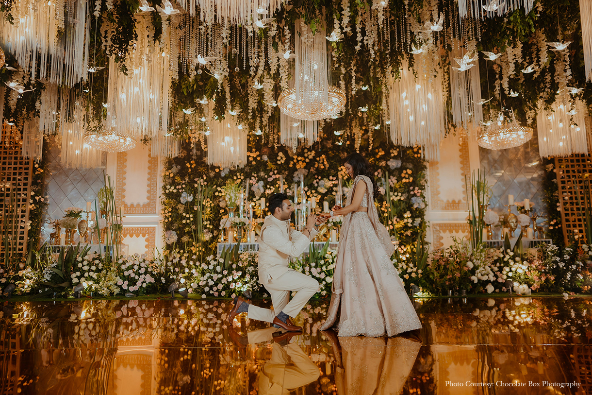 Himanshi Kavad and Nikhil Chandan had the time of their lives as they took the first step towards their ‘happily ever after’ with a lush engagement celebration at Taj Coromandel which was marked by rich floral decor, glamorous dance performances and an elegant couple entry. At the helm of, planning the event was WeddingSutra Favorite – Weddingz by Mindz who ensured everything went ahead exactly as envisioned. Bringing their design chops into the mix and creating an enchanting atmosphere was WeddingSutra Favorite – The Escapade.