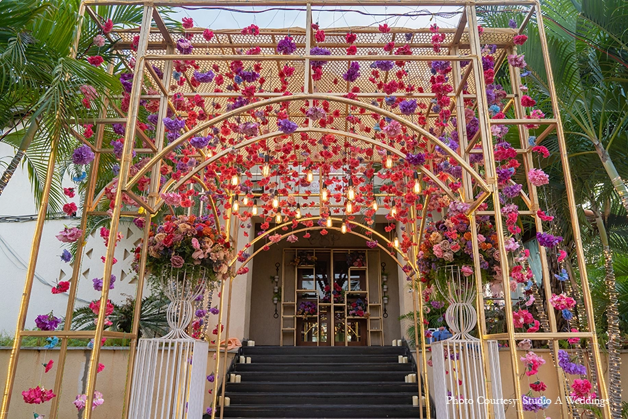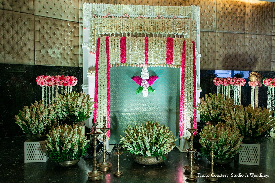 Former cricketer and businessman V Chamundeswaranath’s son, Sravan Prasad’s city wedding to Swathi Priyanka was the talk of the town, with a star-studded guest list and riveting wedding decor to boot. Vividly conceptualized and executed by WeddingSutra Favorites – Baraati Inc. and DreamzKrraft respectively, the stunning details of the wedding are sure to find their way onto your Pinterest board.