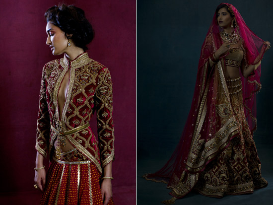 – For the bride, special key-hole jackets, coupled with lehengas in classic hues of deep red and gold.