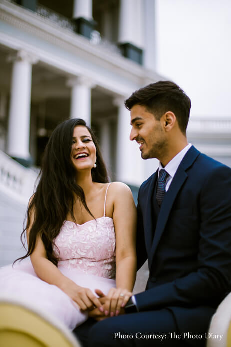 Destiny brought together Aditya and Rutika through their parents and they clicked on their first meeting itself! They also fell in love with Taj Falaknuma Palace which is an iconic hotel and a tourist hotspot in Hyderabad. The palace’s elegant architecture, art, history and natural beauty offered the perfect canvas for their romantic photo shoot captured by WeddingSutra Favorite – The Photo Diary. Here, Rutika shares some interesting moments from the photo shoot.