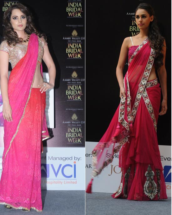 Kangana Ranaut the Face of the Aamby Valley India Bridal Week wore a saree by a newer designer Delhi-based Jyotsna Tiwari.