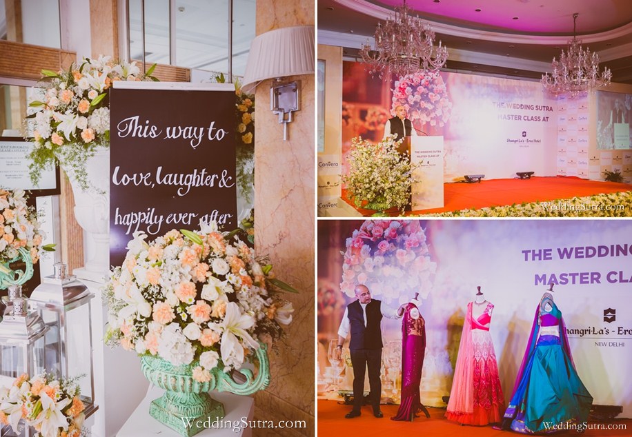 Delhi dulhans, thank you for your overwhelming response to the WeddingSutra MasterClass! We, along with our partner, Shangri La’s Eros Hotel, put our best foot forward to welcome our guests, who included over 60 brides-to-be and the who’s who from the wedding and fashion industries. The hotel provided impeccable hospitality, and the elegant decorations by top wedding decor companies such as Ferns N Petals, Tab Events, MB Events and Olive 9 Events added a further festive vibe to the atmosphere.