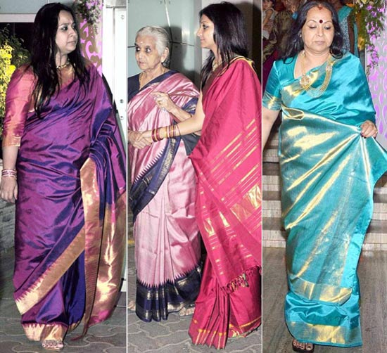 Vidya’s mother, sister and guests at the family-only affair. Everyone wore traditional Kanjeevarams