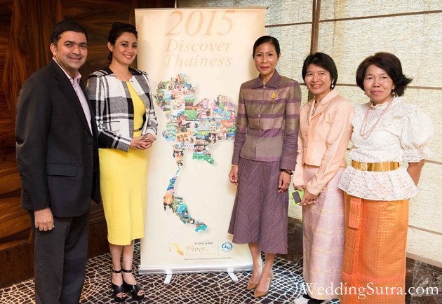 from left to right- Parthip Thyagarajan (WeddingSutra.com), Pooja Ghai (Tranquiil World), Ms Kobkarn Wattanavrangkul (Minister of Tourism- Thailand), Ms Runjuan (Tourism Authority of Thailand), Ms Soraya Homchuen (Tourism Authority of Thailand)