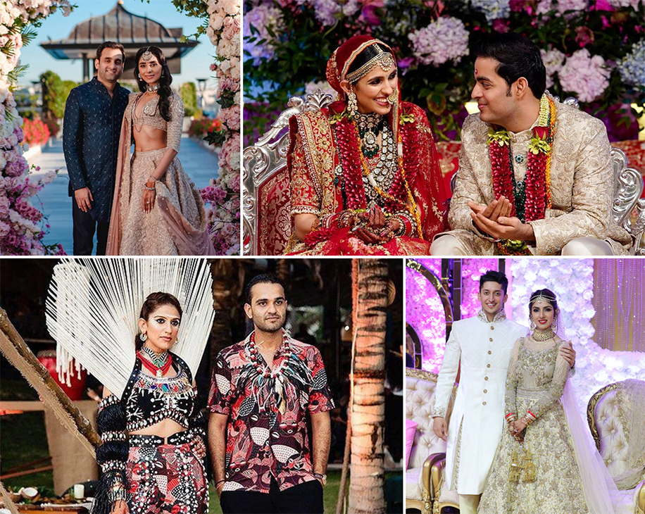 From top left (clockwise)- Pernia Quereshi and Sahil Gilani, Shloka Mehta and Akash Ambani, Tanya Seth and Azhar Morani, Kaabia Grewal and Rushang Shah