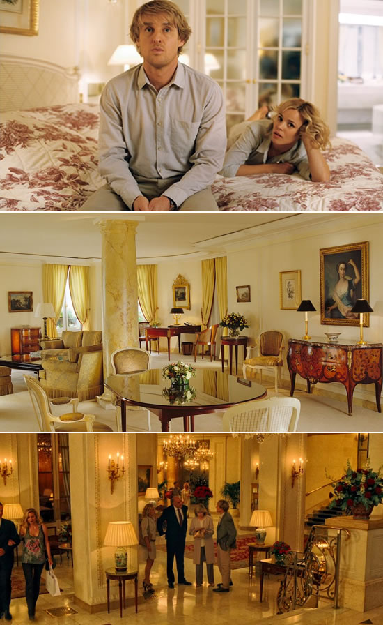 Remember when Gil, Inez, Paul and Nina enjoy a wine-tasting on a terrace of this gorgeous hotel with Eiffel Tower in the background? Shot on the terrace of the Belle Etoile Royal Suite at Hotel Le Meurice that costs more than 17,000€ a night, this suite is Parisian luxury at its finest.